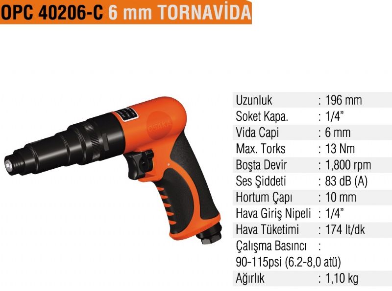 çeşitlerinde kullanmak istediğiniz bits uçlara göre seçim yapmalısınız.Havalı tornavida tetiğe basılarak yada üzerinde bulunan kontrol düğmesi ile devir hızı ayarlanır. Ayrıca bazı havalı tornavida türlerinde darbe ayarı da bulunur. |