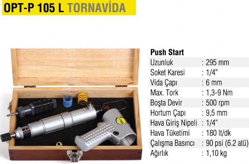 Havalı tornavida satın alırken amacınıza ve kullanım sıklığına göre profesyonel veya amatör bir havalı tornavida seçmelisiniz. Havalı tornavidalar, push start ,shut off ve tork kontrollu olarak amaca uygun seçilmelidir. havalı tornavida Kullanmaya başlamadan önce Havalı tornavida çeşitlerinde kullanmak istediğiniz bits uçlara göre seçim yapmalısınız.Havalı tornavida tetiğe basılarak yada üzerinde bulunan kontrol düğmesi ile devir hızı ayarlanır. Ayrıca bazı havalı tornavida türlerinde darbe ayarı da bulunur. |