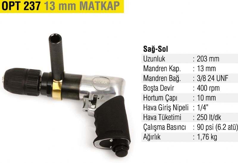 Havalı matkap satın alırken amacınıza ve kullanım sıklığına göre profesyonel veya amatör bir makine seçebilirsiniz. Havalı matkap, değiştirilebilir ve çıkarılabilir değişik tipte matkap uçlarıyla kullanılır. Kullanmaya başlamadan önce uygun matkap ucunu seçmelisiniz. Havalı matkap çeşitlerinde matkap ucunu havalı matkap a bağlamak için mandren bulunur.Havalı Matkap delme hızı tetiğine basılarak ayarlanır. Ayrıca bazı matkap türlerinde tork (kuvvetli dönme ayarı) ve darbe ayarı da bulunur. |