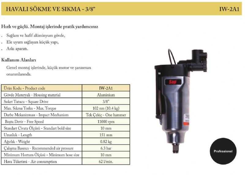 Havalı Somun Sökme Havalı Somun Sıkma IW-2A1