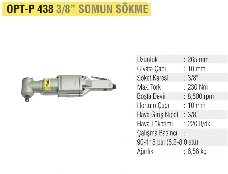 Havalı somun sökme aletleri otomotiv sektörü, servisler, makine üretim, inşaat, çelik konstrüksiyon, mobilya vb. bir çok sektörde somun sökme takma ,cıvata sökme takma işlerinizde kullanılır. Havalı somun sökme aletleri darbe mekanizmalarına göre ve tork değerlerine göre seçilmelidir havalı somun sökme aletlerimiz ölçülmüş tork değerlerine göre soket karesi 1/8”, 1/4”, 3/8” , 1/2” , 3/4", 1” , 1”1/2” olmak üzere sıkılacak civata,somun diş ölçüsüne göre seçilmelidir, yanlış seçilen havalı somun sökme aleti işlerinizde kolaylık sağlamayacağıgibi daha fazla sorun çıkaracağından yapacağınız işe uygun havalı somun sökme ,havalı somun sıkma sıkma aleti seçmelisiniz.Şirketimiz bu konuda daima müşterilerimizin doğru havalı somun sökme ve diğer havalı el aletleri tedariği , tamiri ve teknik destek konularında sorunsuz hizmet vermektedir bilgi için bizi arayabilir teknik ekibimizden her türlü yardımı alabilirsiniz.