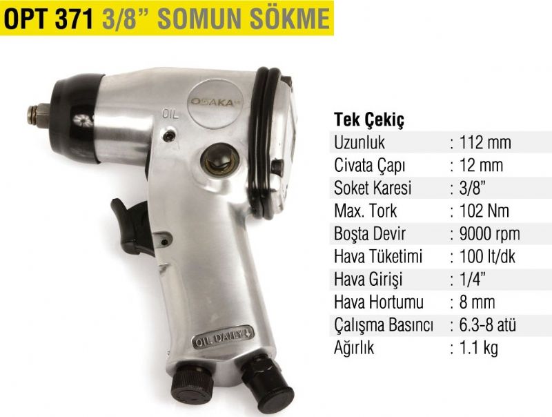 Havalı somun sökme aletleri otomotiv sektörü, servisler, makine üretim, inşaat, çelik konstrüksiyon, mobilya vb. bir çok sektörde somun sökme takma ,cıvata sökme takma işlerinizde kullanılır. Havalı somun sökme aletleri darbe mekanizmalarına göre ve tork değerlerine göre seçilmelidir havalı somun sökme aletlerimiz ölçülmüş tork değerlerine göre soket karesi 1/8”, 1/4”, 3/8” , 1/2” , 3/4", 1” , 1”1/2” olmak üzere sıkılacak civata,somun diş ölçüsüne göre seçilmelidir, yanlış seçilen havalı somun sökme aleti işlerinizde kolaylık sağlamayacağıgibi daha fazla sorun çıkaracağından yapacağınız işe uygun havalı somun sökme ,havalı somun sıkma sıkma aleti seçmelisiniz.Şirketimiz bu konuda daima müşterilerimizin doğru havalı somun sökme ve diğer havalı el aletleri tedariği , tamiri ve teknik destek konularında sorunsuz hizmet vermektedir bilgi için bizi arayabilir teknik ekibimizden her türlü yardımı alabilirsiniz. |
